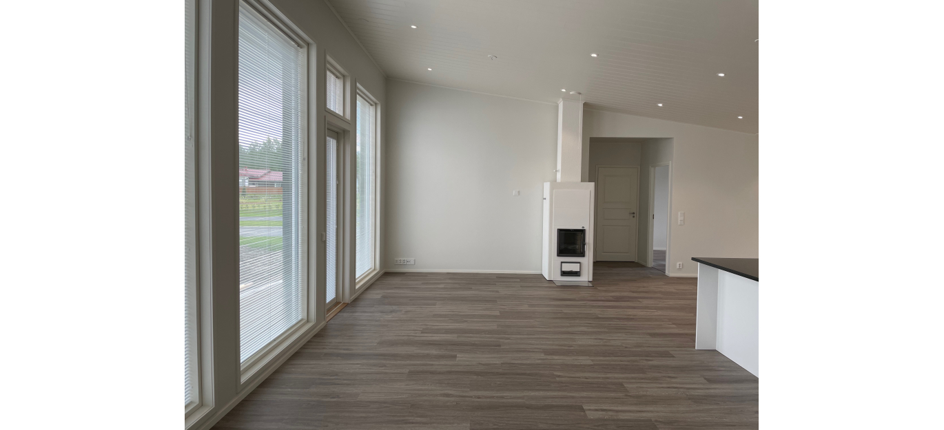 Tässä kodissa asutaan tyylillä. Pinta-alaltaan hulppeisiin oleskelutiloihin on mahdollista lisätä näyttävyyttä vaikka vinolla sisäkatolla ja tavallista korkeammilla ikkunoilla. Ja kaiken tämän upeuden näkee heti astuttaessa väljään eteistilaan.